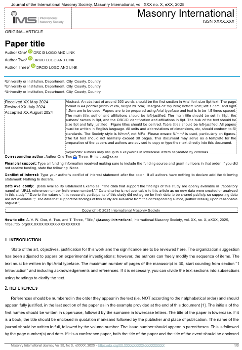 Our journal, Masonry International, has been a reference in the masonry design and construction field since 1990 and has been indexed at Scopus since 2012. The new editorial board, with academic and industrial IMS members, is responsible for revitalizing the journal.